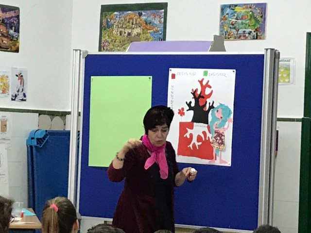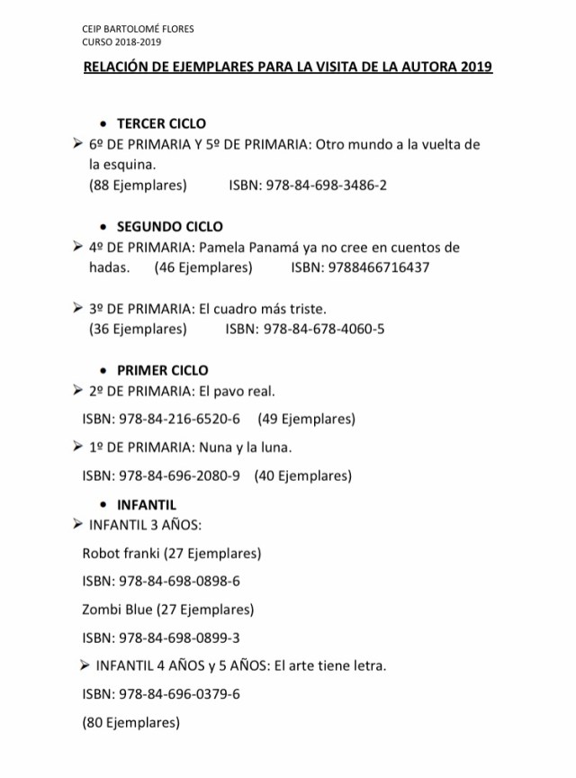 Estimadas familias. Hoy día 13/02/2019 nos ha visitado la ilustradora y escritora de los libros leídos por nuestros alumn@s en este segundo trimestre, Violeta Monreal. Nuestros chicos y chicas han podido escuchar de boca de la autora los aspectos más importantes del libro, así como charlar sobre las inquitudes de estos.Finalmente se ha llevado a cabo la firma de libros.