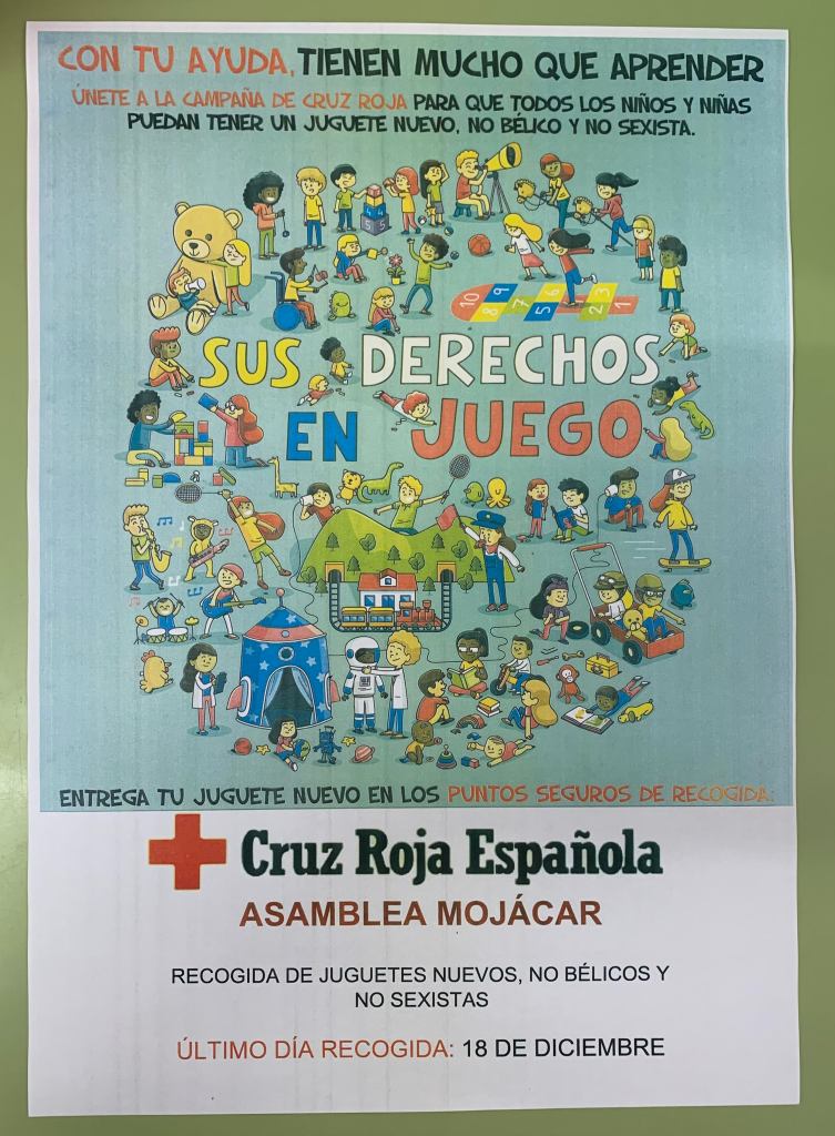 Hasta el próximo día 18 de diciembre, podéis colobarar aportando alimentos no perecederos y juguetes nuevos, no bélicos y no sexistas.