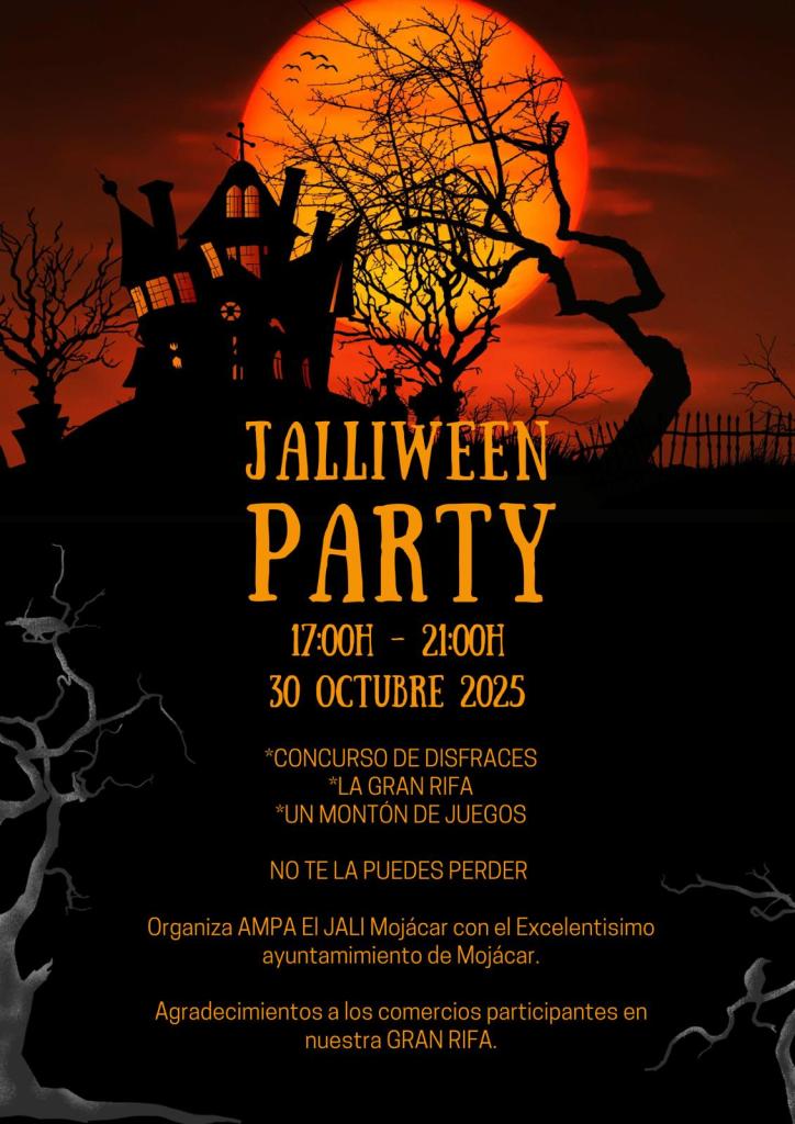 Estimadas familias! Como ya sabéis el próximo jueves 30 de octubre tenemos la esperada fiesta de «Jaliween» de nuestra AMPA en el centro de usos múltiples. Estamos trabajando mucho para que paséis una tarde terrorífica!!. Recordaros que quien quiera donar/aportar algo de comida/bebida será recibido con las manos abiertas!!!Podéis dejarlo en el centro de artesanía ese mismo día a partir de las 16h. Desde la nueva directiva del AMPA, queremos dar las gracias por todo vuestro apoyo, esfuerzo y cariño.