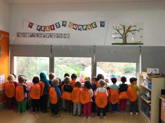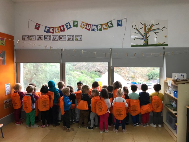Entrega por parte de la AMPA «El Jalí» de las mochilas de bienvenida al cole para el alumnado de infantil de tres años.
