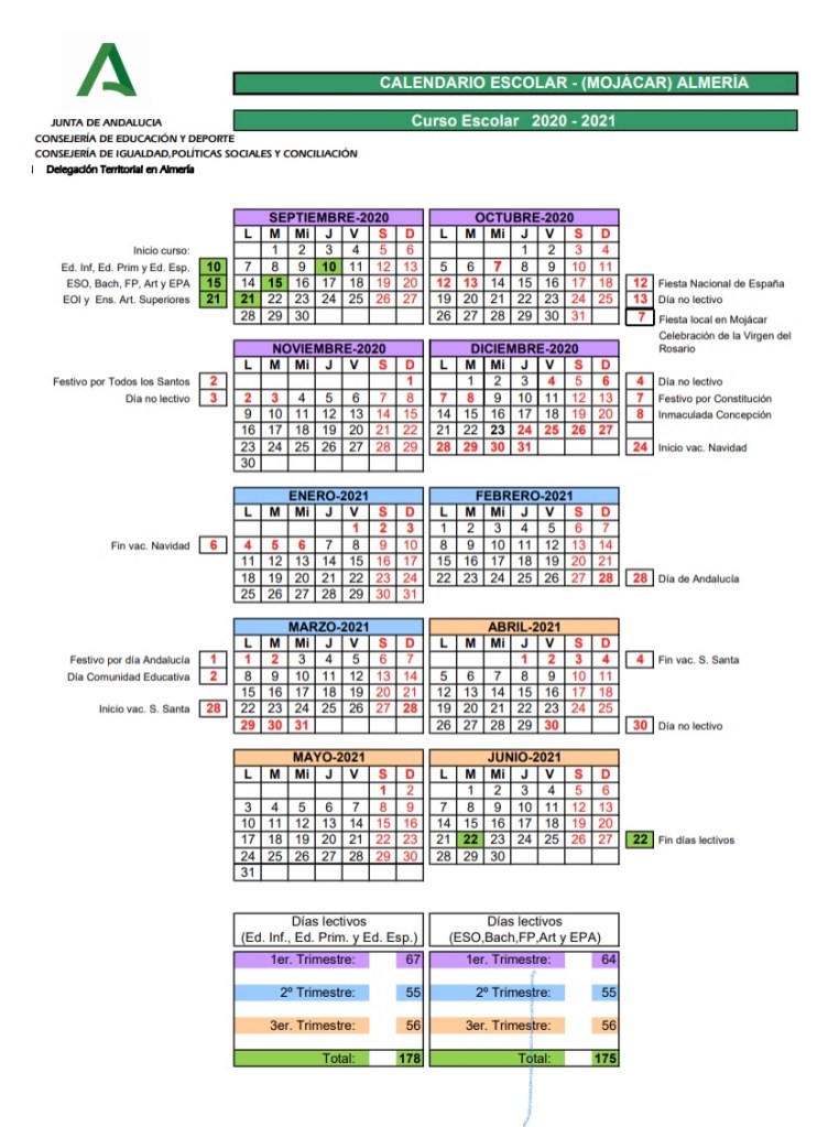 Les recordamos que el de transporte escolar es gratuito solo para el alumnado empadronado en Mojácar y le corresponde únicamente la parada que se le asigne: la más cercana al domicilio. Se debe entregar la solicitud en secretaría marcando la parada que le corresponde. Por cierto, es más importante que nunca tener actualizados todos los datos, así que comuniquen sus traslados de domicilio y de teléfono a lo largo del curso escolar. Respecto al servicio de comedor les recordamos que las plazas otorgadas se adjudicaron en junio y el listado de admitidos y suplentes está en el tablón de anuncios. Si se produce alguna baja estén atentos los suplentes. El horario de comedor es de 14 a 16 horas. Por cuestiones de protocolo no deben entrar a recoger su hijo/a, sino que será entregado por una monitora en la puerta. Rogamos eviten aglomeraciones y, si pueden llegar antes de las 16 horas, comuníquenlo a las monitoras para ir escalonando la salida a partir de la 15 horas.